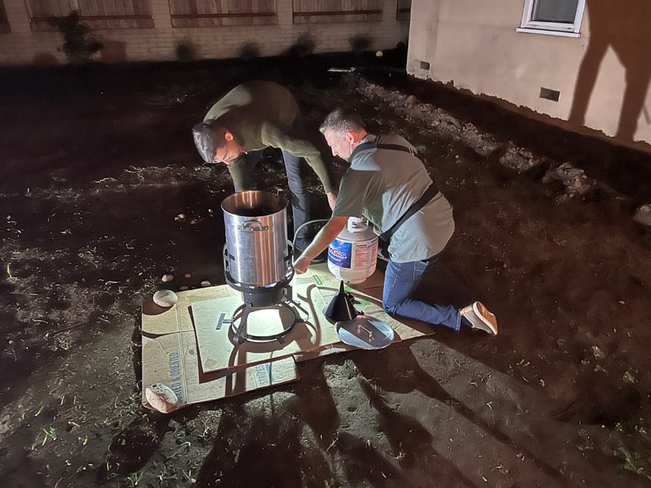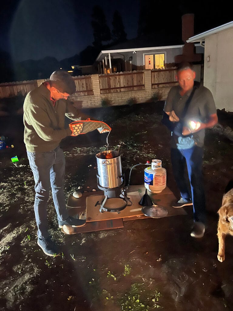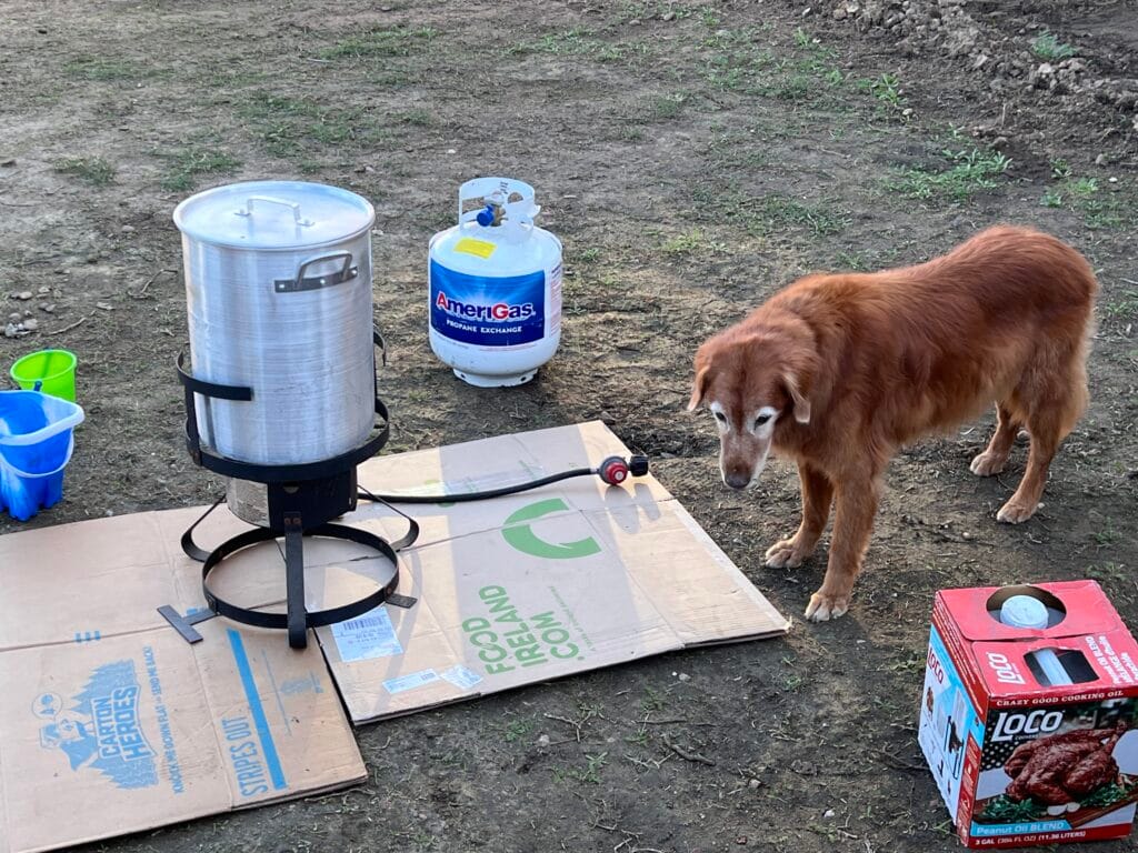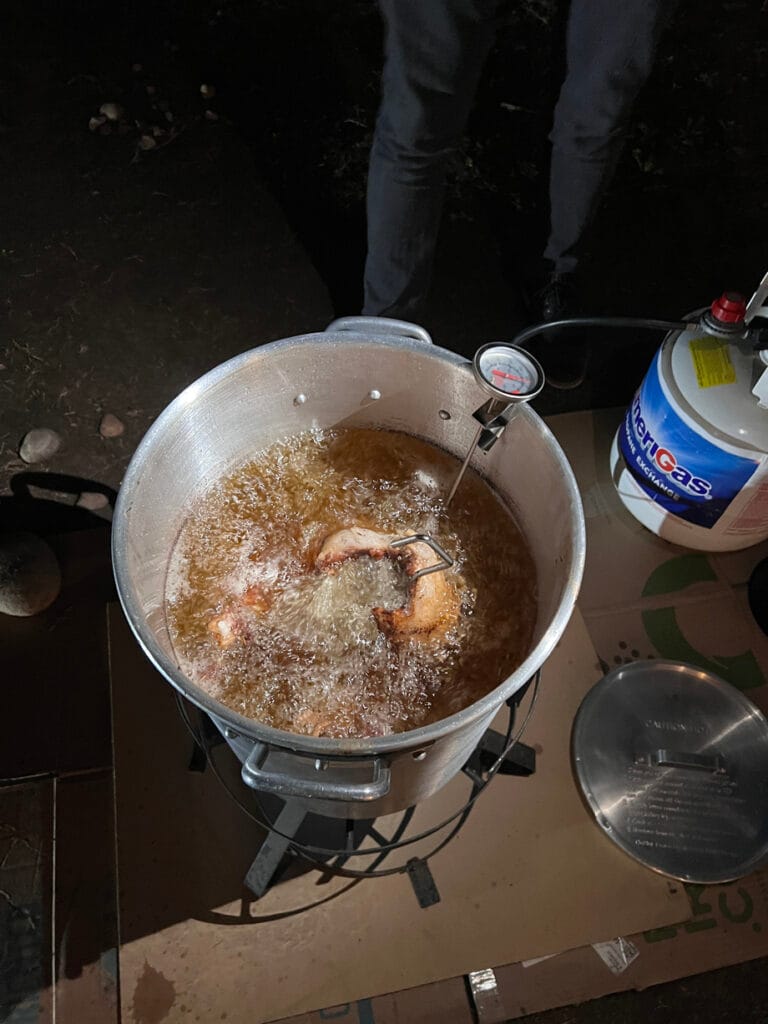 Yes, this is a turkey fryer setup. The pot, the burner, the gas, and the three gallons of frying oil.